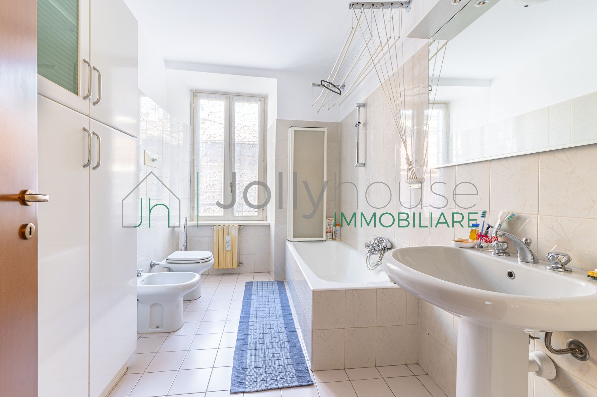 Il bagno, dotato di vasca, è funzionale e ben organizzato.